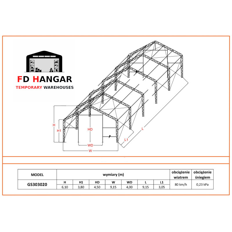 Magazzino di stoccaggio 9,15x9,15 m GS303020