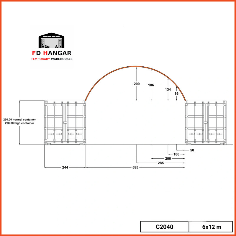 La tettoia per container C2040H 6×12 - una soluzione economica