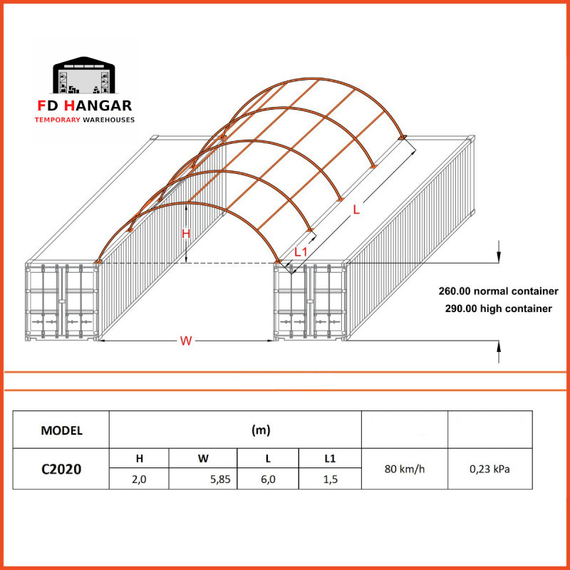 La tettoia C2020 da 6x6 metri si caratterizza per la sua versatilità, che ne consente l'utilizzo in un'ampia gamma di settori e condizioni. Può essere utilizzata come magazzino temporaneo, spazio di lavoro, garage per macchine agricole, area di stoccaggio per materiali edili o anche come spazio aggiuntivo durante eventi all'aperto. Le possibilità di utilizzo sono praticamente infinite, e questo lo rende un investimento che si ripaga rapidamente.