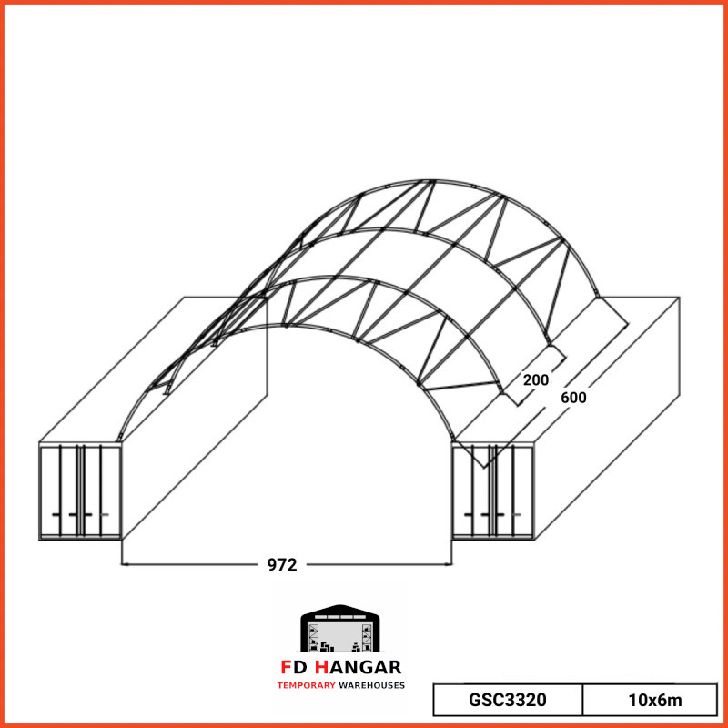 La tettoia BC3320 da 10 x 6 metri è una soluzione strutturale moderna e funzionale progettata per l'installazione su blocchi di cemento lego. Il prodotto è ideale per la protezione permanente di aree di stoccaggio, luoghi di lavoro e scorte di materiali in diversi settori come l'industria, l'agricoltura, il riciclaggio e l'edilizia.