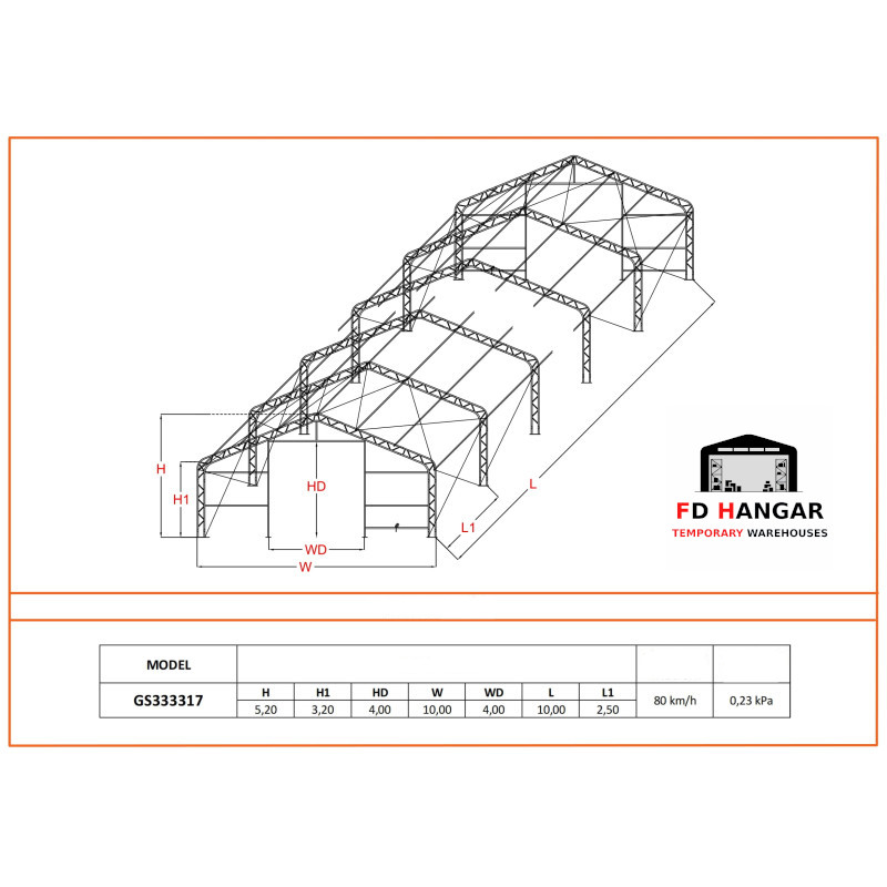 • Larghezza di apertura della porta (m) 4.00x4.00