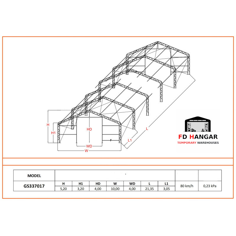 La tenda di stoccaggio **GS337017** è stata progettata per diverse applicazioni. Grazie alle sue dimensioni e alla sua durata, è ideale come spazio di stoccaggio nei cantieri, dove può essere utilizzata per conservare materiali da costruzione, attrezzi o macchinari. È ideale anche per le aziende agricole, dove può essere utilizzato per conservare attrezzature agricole, sementi o foraggio. Nell'industria, la tenda di stoccaggio può essere utilizzata come magazzino temporaneo, soprattutto in situazioni in cui è necessario disporre rapidamente di spazio aggiuntivo. Il montaggio di una tensostruttura di questo tipo richiede circa 3-5 giorni lavorativi, a seconda della lunghezza.