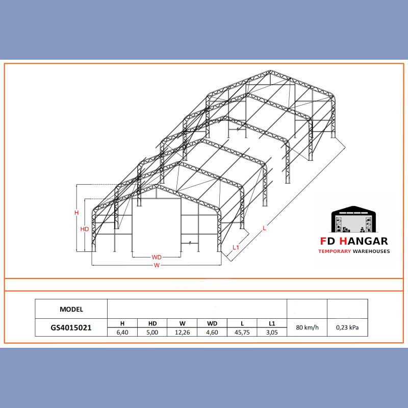 Magazzino di stoccaggio 12,2 x 45,75 m GS4015021