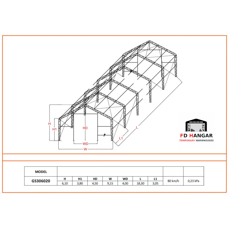 Magazzino di stoccaggio 9,15x18,30 m GS306020