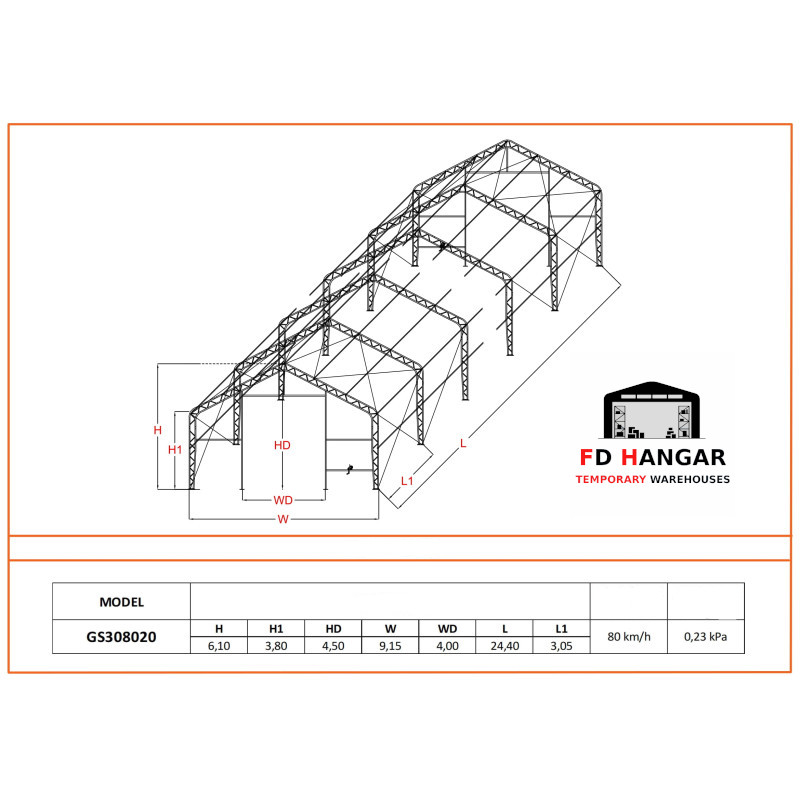 Magazzino di stoccaggio 9,15x24,40 m GS308020