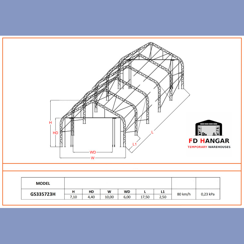 Questo tipo di tensostruttura è stato progettato per gli utenti che necessitano di un ingresso particolarmente ampio per la loro tenda da officina. È la risposta alle esigenze degli agricoltori che desiderano parcheggiare le loro mietitrebbie sotto una tettoia senza dover ripiegare il telaio. Per l'industria agricola, parcheggiare le macchine sotto un tetto è particolarmente importante a causa degli effetti dannosi dei raggi UV sui componenti in gomma.
