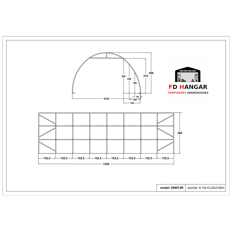 I tubi in acciaio zincato con cui è realizzato lo scheletro della Tende di stoccaggio ad arco sono resistenti alla corrosione e garantiscono una lunga durata. L'intera struttura è ricoperta dal telo in PVC più spesso sul mercato, 900 g/mq, che offre un'eccellente protezione dalle intemperie. Il telone è impermeabile e resistente ai raggi UV, il che significa che le merci, le attrezzature, le balle di fieno o i macchinari stoccati all'interno della tensostruttura sono completamente protetti da pioggia, vento, neve e dagli effetti nocivi del sole.