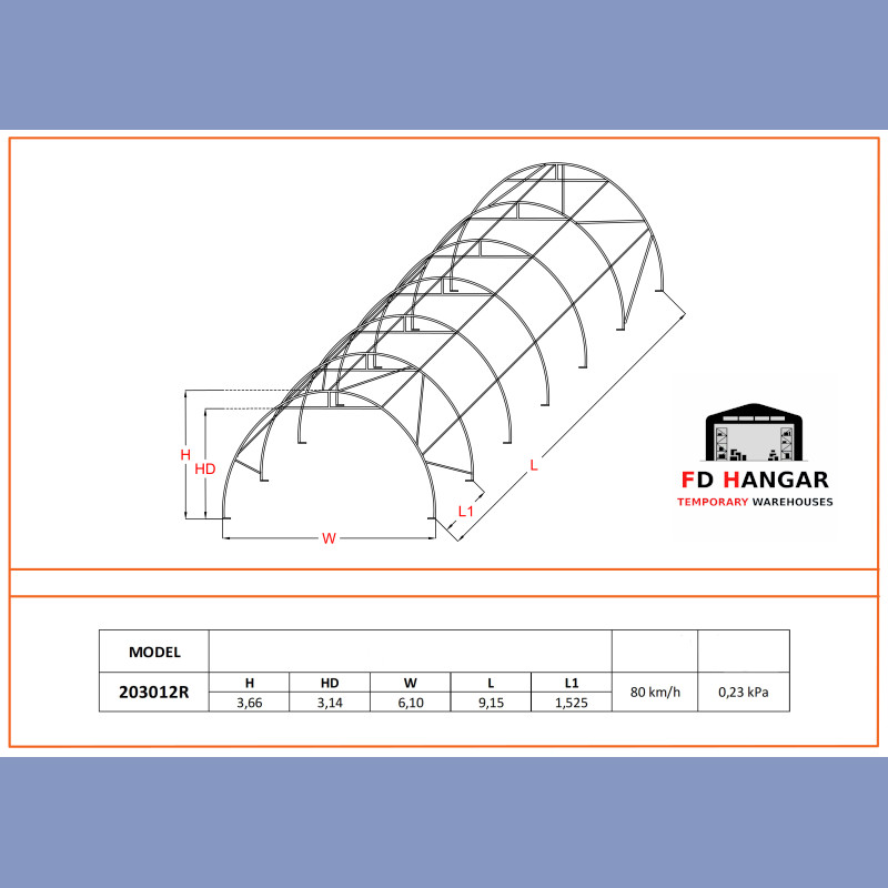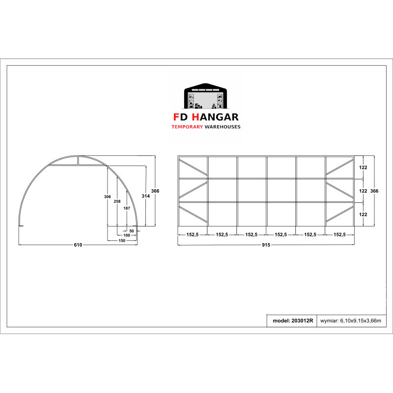 Tende di stoccaggio ad arco 6×9 m 203012P