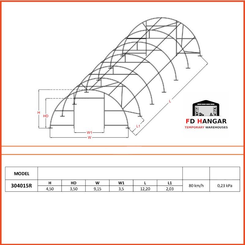 Tende di stoccaggio ad arco 9,15×12 m 304015R