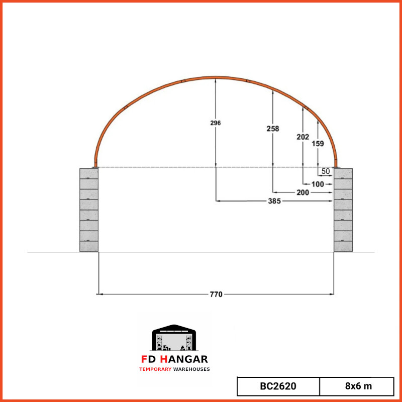 La parete a mezzo timpano utilizzata nel BC2620 aumenta la funzionalità della struttura, consentendo una protezione più efficace dell'area di stoccaggio. Il suo design offre riparo dalle precipitazioni e dal vento, senza limitare lo spazio di manovra.