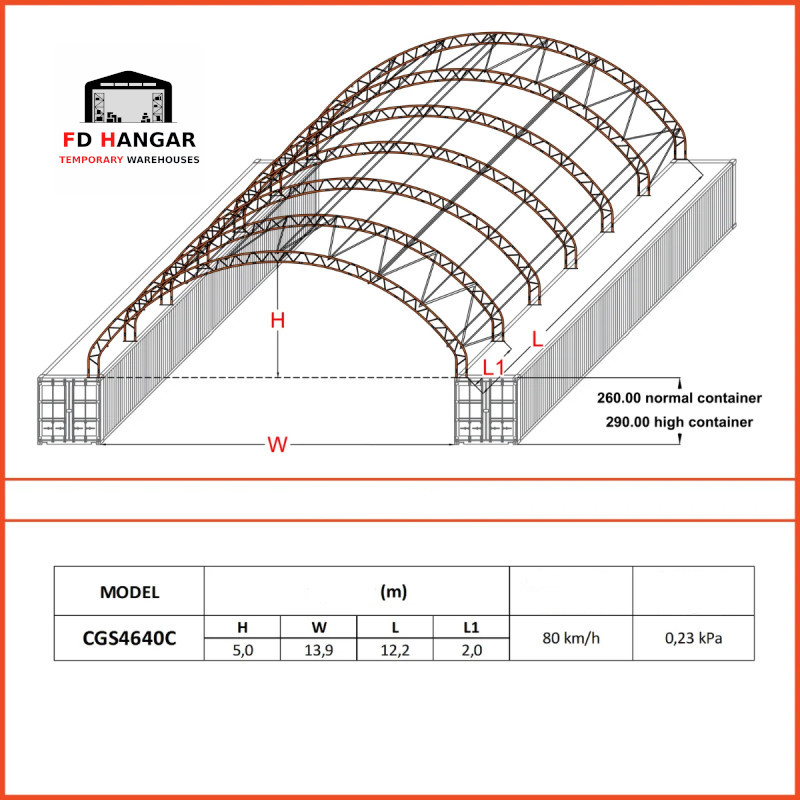 Il BC4640 si monta in 2-5 giorni, a seconda delle condizioni del sito. Il design modulare consente di collegare altre campate, di installare in un secondo momento pareti terminali e cancelli d'ingresso. In caso di modifica del piano di sviluppo, la tettoia, compresi i blocchi, può essere trasferita in un altro sito senza perdita di funzionalità. Rispetto alle strutture in muratura, si tratta di un vero e proprio risparmio di tempo e di denaro.